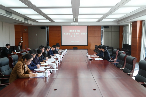 11月21日上午,我校在明达楼221会议室开展“不忘初心、牢记使命”主题教育座谈会。省委第五巡回指导组组长、省委巡视组原组长、正厅级巡视专员陶时梅,省委第五巡回指导组组员,省纪委省监委驻省教育厅纪检监察组副组长黄根来到会指导。校党委委员、纪委书记、省监委派驻监察专员朱鸿出席并主持会议。来自教师教育学院、艺术学院、理学院、生命科学学院的学院党委书记,机关工会党支部书记,机关科技处、人文社科处联合党支部书记,工学院教工第三党支部副书记、医学院教工第三党支部书记、文学院中文系学生党支部书记参加了会议。