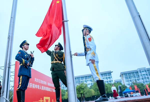 10月1日早上,我校举行庆祝中华人民共和国成立七十五周年升国旗仪式。校党委书记许慧霞,副校长(主持行政工作)盛况,校党委副书记丁敢真,校党委委员、组织部部长劳士健,校党委委员、宣传部部长朱小芳,校党委委员、党校办主任沈国丰出席,学校相关职能部门负责人,各学院党委(总支)书记、副书记,辅导员代表和学生代表参加仪式。