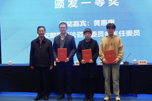 为进一步鼓励和培养涉外法治建设人才,在经过精心挑选和评审工作后,此次大会对28位获奖论文的专家学者及师生们进行表彰。胡铭、徐晓波、黄惠康分别为一、二、三等奖的作者颁发了获奖证书。